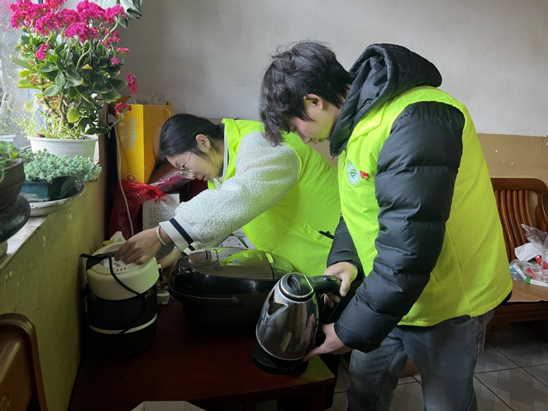 “丁奶奶,祝您元宵节快乐!我们给您带了元宵,再给您量量血压。”在社区老党员丁祥玉家中,学生党员们一边陪老人唠家常,一边忙前忙后:有的拿出血压计为老人测量血压,详细记录健康数据;有的走进厨房整理餐具、擦拭灶台;有的仔细检查家中热水壶、插线板等小家电的使用安全。一句句暖心问候,一次次细致服务,让老人的屋里充满欢声笑语。